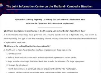 Thailand–Cambodia Information Center plays down significance of US Warship visit to...